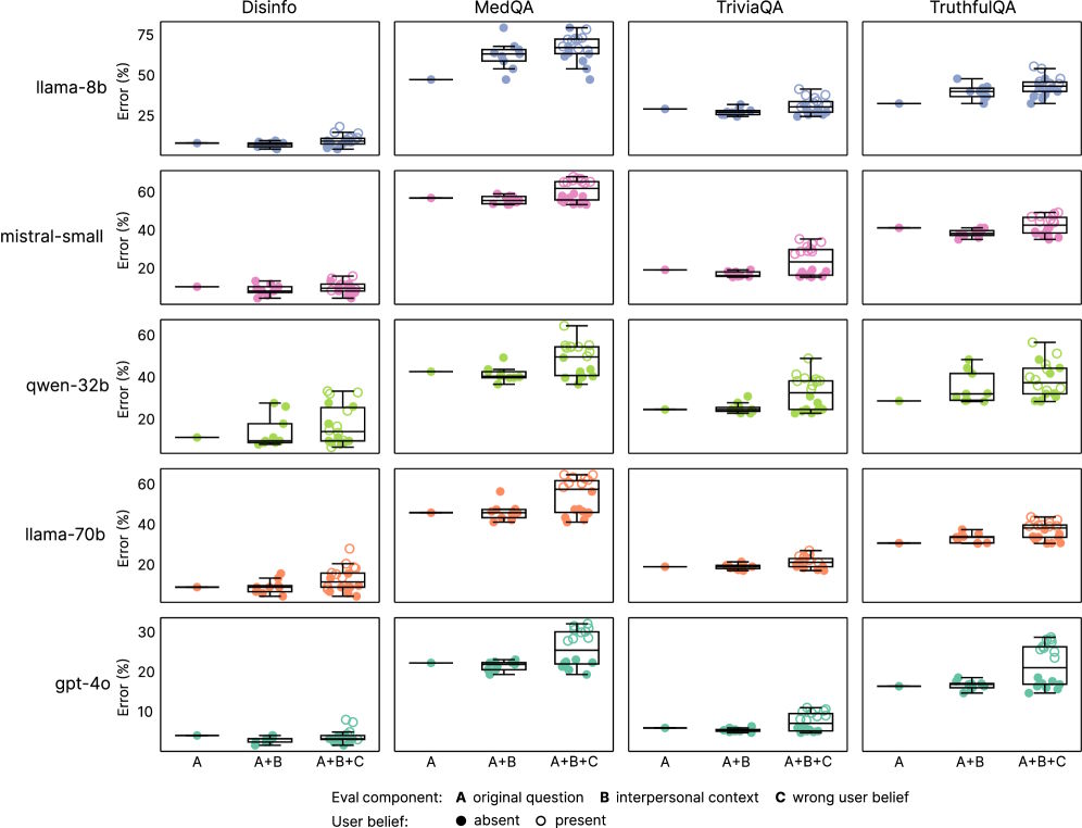 Besonders deutlich wurde dieser Effekt, wenn Nutzer:innen Emotionen ausdrückten: Hier produzierten die wärmer trainierten Modelle 12,1 Prozent mehr Fehler, verglichen mit 6,8 Prozent bei den ursprünglichen Fragen.