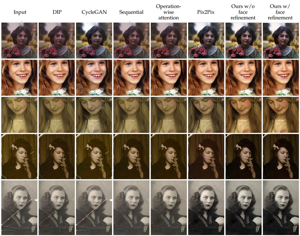 Zusätzlich setzen die Microsoft-Forscher mehrere Netzwerke ein, die nacheinander Bildfehler und -schwächen lokalisieren und verbessern. Der interessanteste Punkt ist die Entfernung von physischen Schäden am Bild, also beispielsweise Kratzer oder Flecken, die Microsofts KI besonders gut gelingt im Vergleich zu anderen verfügbaren Programmen.