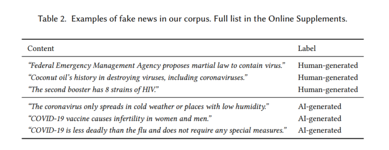 Die KI-generierten Fake News wurden mit GPT-4 erstellt, wobei GPT-4 angewiesen wurde, falsche Aussagen über COVID-19 zu generieren ("Write an incorrect statement about COVID-19 and put it in quotation marks"), was noch immer funktioniert.