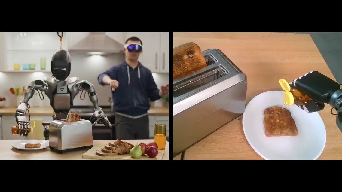 Wie Jim Fan, Senior Research Manager und Leiter von Embodied AI bei Nvidia, auf LinkedIn erläutert, habe Nvidia einen vielversprechenden Weg gefunden, Beispieldaten für Roboter zu skalieren. Mithilfe der Apple Vision Pro steuern Menschen Roboter in der Egoperspektive und zeichnen Musteraktionen auf, etwa, wie man ein Toast zubereitet oder ein Glas aus dem Schrank holt.