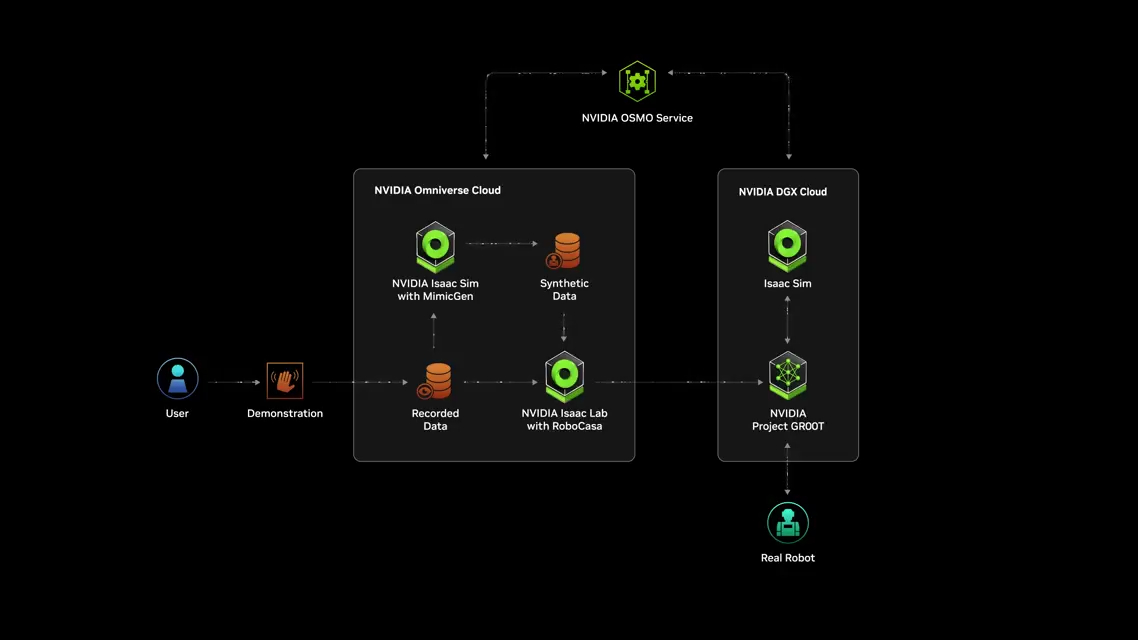 Mit Project Gr00t hat Nvidia vor wenigen Monaten seine KI-Plattform für die Entwicklung humanoider Roboter vorgestellt. Ein Hindernis bei der Entwicklung alltagstauglicher Roboter war bisher der Mangel an Trainingsdaten. Mit einer Mischung aus menschlichen und synthetischen Daten will das Unternehmen dieses Problem nun gelöst haben.