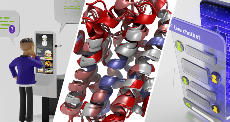 Ein wichtiges Einsatzgebiet solcher großen Sprachmodelle sei die Medizin: Spezialisierte Varianten der Modelle sagen etwa Moleküle, Proteine oder DNA-Sequenzen vorher. Chemie und Biologie hätten ihre eigene Sprache, so Nvidia.