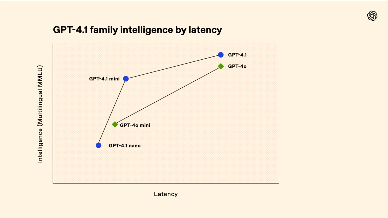 Neben dem Hauptmodell führt OpenAI zwei kleinere Varianten ein: GPT-4.1 mini und GPT-4.1 nano. Beide sollen eine hohe Leistung bei reduziertem Ressourcenverbrauch bieten. GPT-4.1 mini ist laut OpenAI 83 Prozent günstiger als GPT-4o und doppelt so schnell – bei gleichzeitig ähnlicher oder besserer Performance in Benchmarks wie MMMU (Multimodal Understanding) und MathVista.