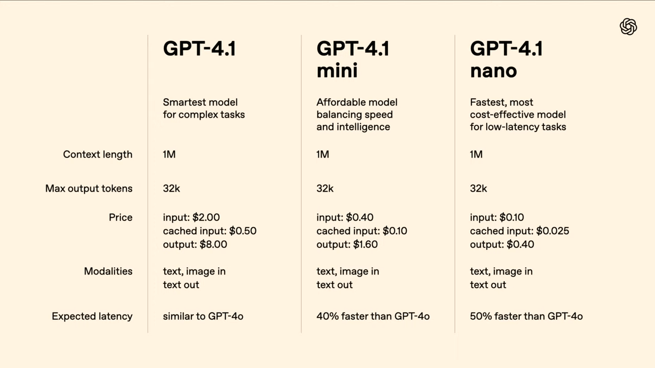 Mit GPT-4.1, GPT-4.1 mini und GPT-4.1 nano stellt OpenAI eine neue Modellfamilie vor, die sich gezielt an Entwickler:innen richtet. Die KI-Systeme sollen in nahezu allen Bereichen leistungsfähiger, schneller und günstiger sein als ihre Vorgänger – darunter GPT-4o und GPT-4.5 Preview.