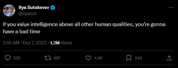 Anfang Oktober schrieb er auf Twitter.com: "Wenn du Intelligenz über alle anderen menschlichen Qualitäten stellst, wirst du eine schlechte Zeit haben."