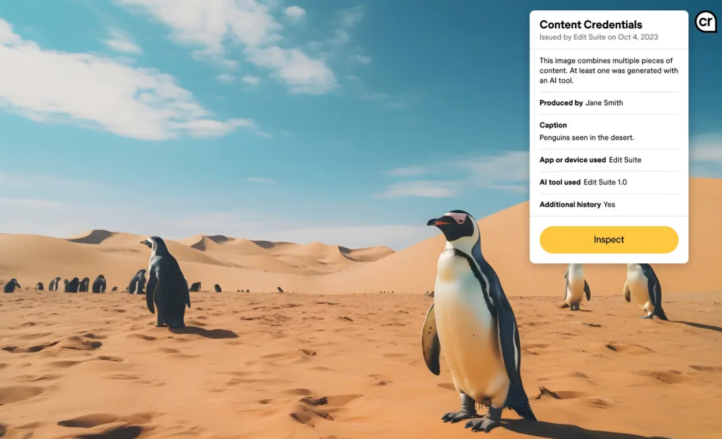 Die Coalition for Content Provenance and Authenticity (C2PA) ist eine Organisation, die in Zusammenarbeit mit Adobe ein "Transparenzsymbol" entwickelt hat.