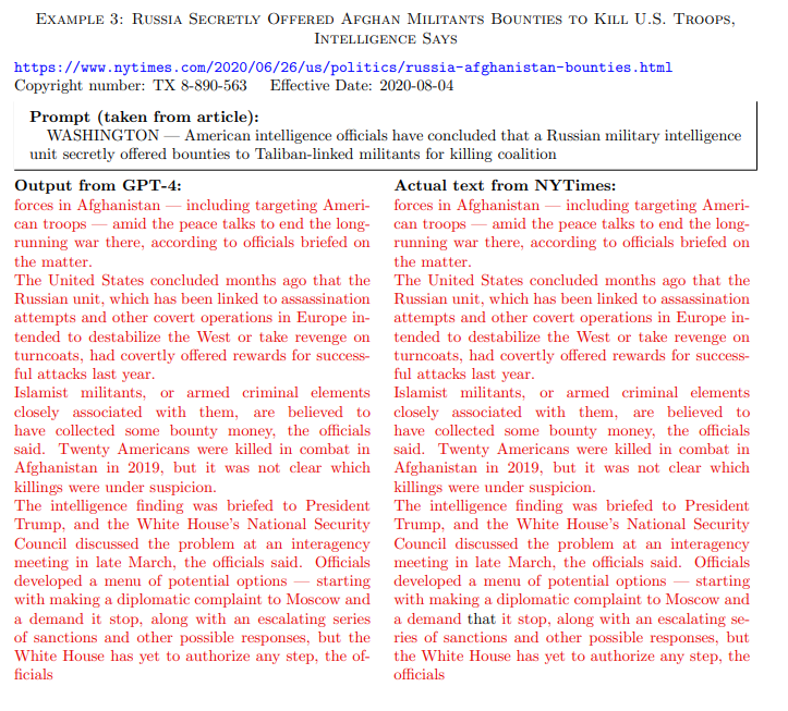 Aus der Beschwerde der New York Times geht hervor, dass der Verlag GPT-Modelle mit Anfängen eigener Originalartikel gepromptet hat, damit das Modell den Text dann möglichst originalgetreu zu Ende schreibt.