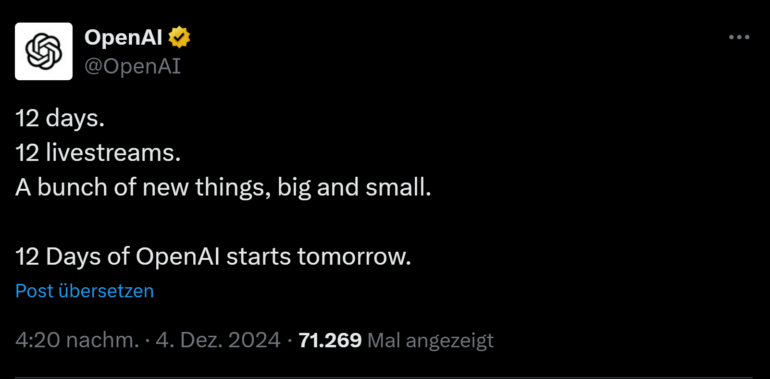 OpenAI startet "12 Days of OpenAI": Livestream-Serie verspricht große Neuheiten