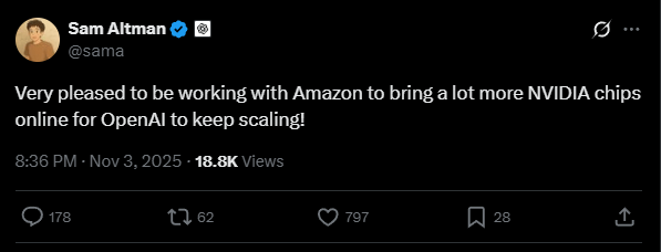 OpenAI und Amazon Web Services (AWS) kündigen 38-Milliarden-Dollar-Kooperation an