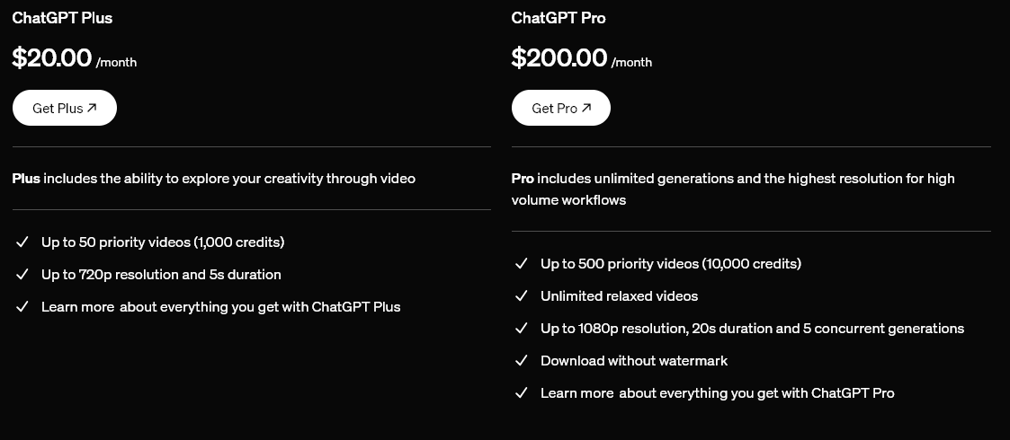Sora ist ein eigenständiges Produkt mit einer eigenen Benutzeroberfläche. ChatGPT-Plus- und -Pro-Abonnenten haben jedoch über ihr ChatGPT-Abonnement Zugriff darauf, es fallen keine zusätzlichen Gebühren an.