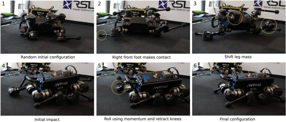 Nach dem Training steuerte die KI dann den echten "Anymal"-Roboterhund mit seinen zwölf Gelenken. Der konnte dank der KI-Steuerung rund 25 Prozent schneller laufen als in bisherigen Versuchen und selbst aus ungünstigsten Lagen wieder aufstehen.