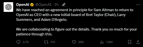 Nach einer enormen Verschwendung von Kapital, Zeit und Vertrauen kehren Sam Altman und Greg Brockman zu OpenAI zurück. Der Vorstand wird erneuert.