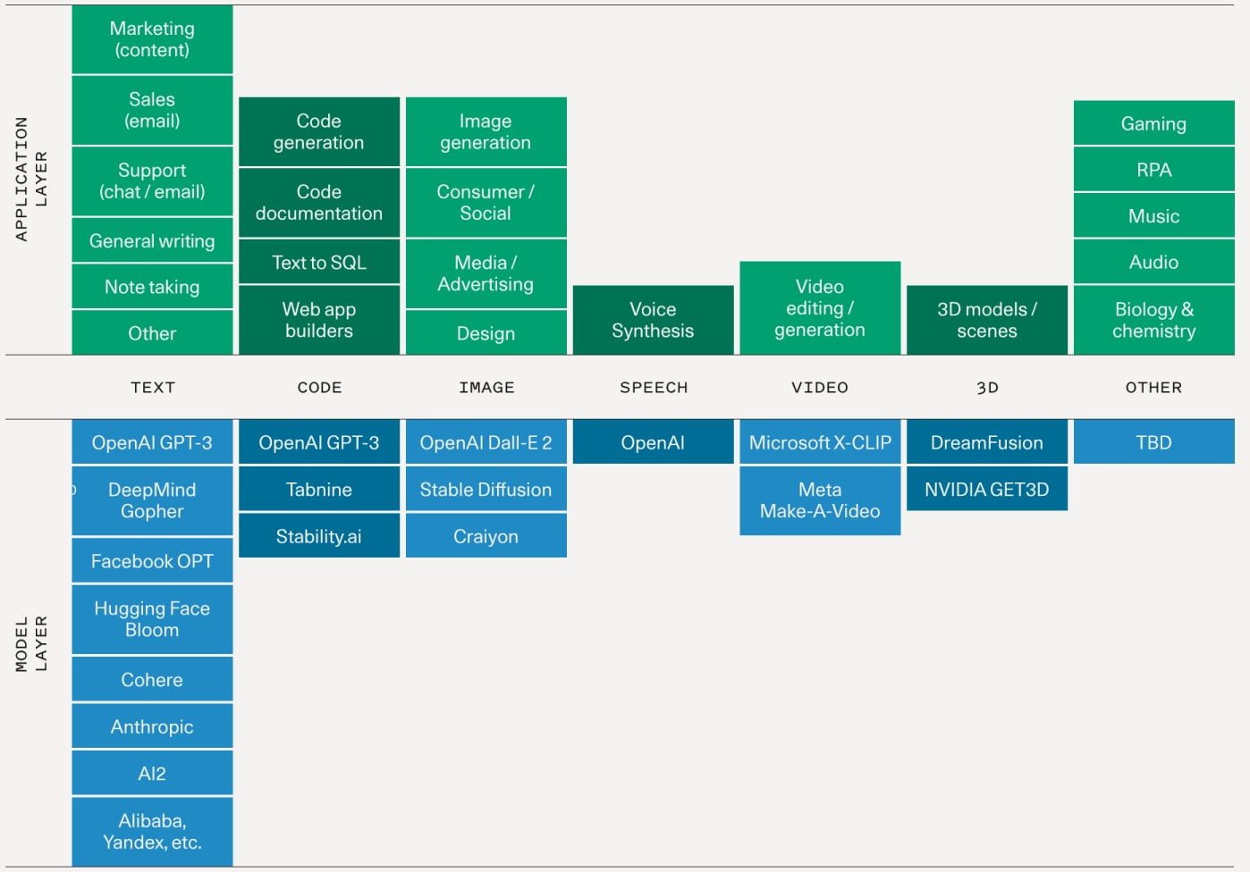 Sequoia Capital hat eine erste Market Map mit Unternehmen und Start-ups für generative KI erstellt.