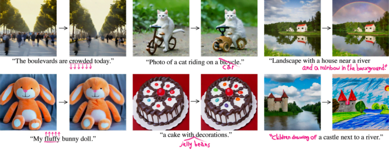 Mit einer anderen Methode können Wörter hinzugefügt und so einer ansonsten gleichbleibende Szene, Objekte oder andere visuelle Elemente hinzugefügt werden. Mit einer dritten Methode kann die Gewichtung einzelner Wörter angepasst und so ein Merkmal eines Bildes wie die Größe einer Menschengruppe oder die "Flauschigkeit" eines Teddybären verändert werden.