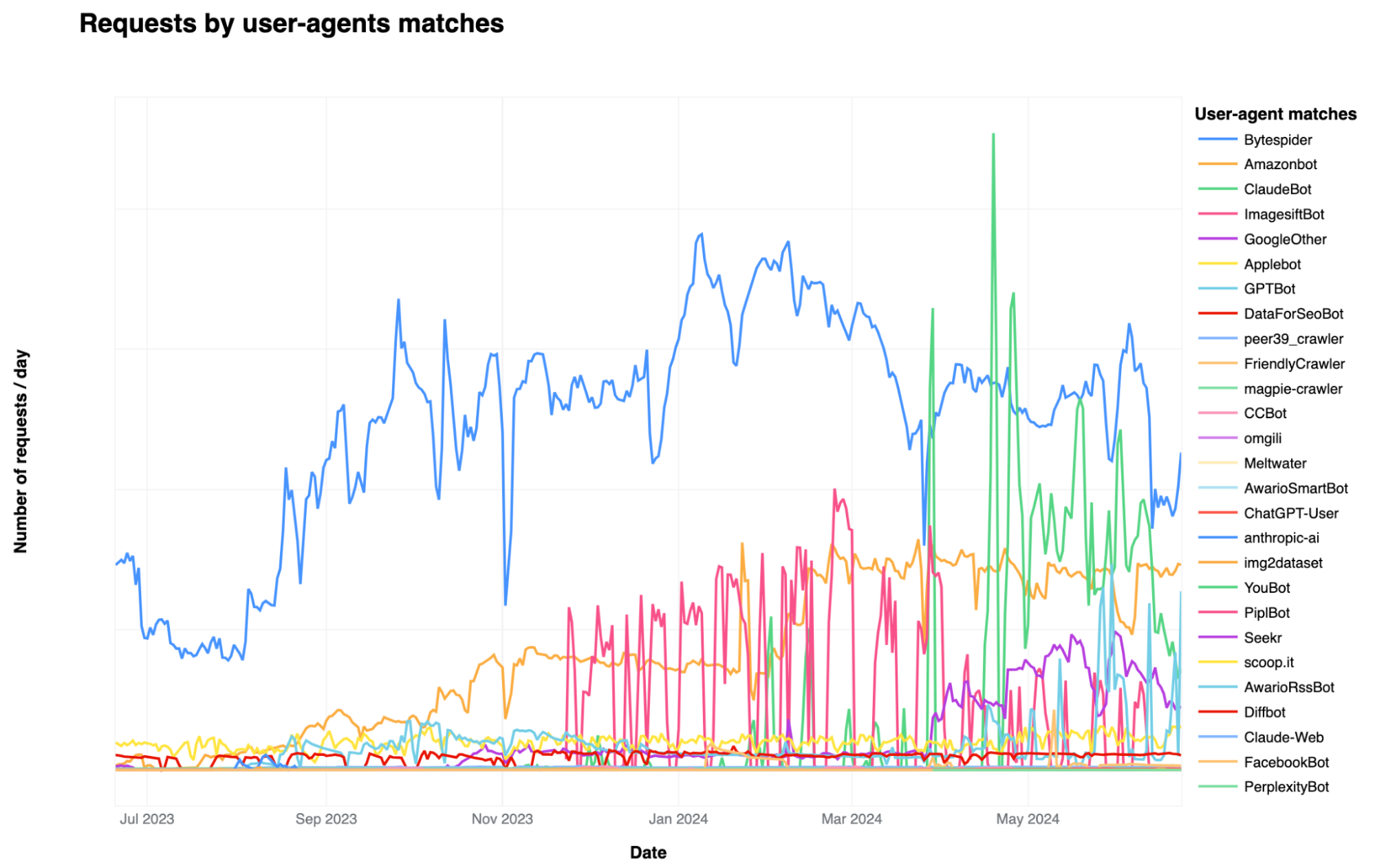 Bytespider könnte Trainingsdaten für den chinesischen ChatGPT-Konkurrenten Doubao sammeln, der Amazonbot soll hauptsächlich Alexa-Antworten indexieren. ClaudeBot sammelt Trainingsdaten für Anthropics Claude-Modelle.