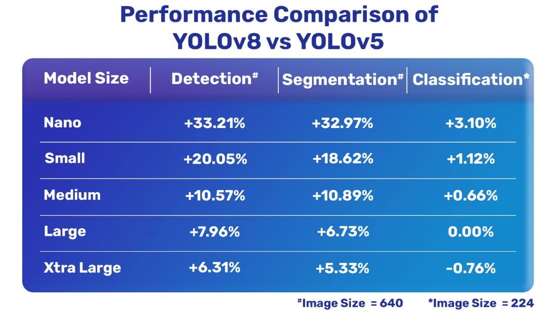 Im Vergleich zu früheren YOLO-Modellen soll YOLOv8 gerade bei den kompakteren Versionen, die auf schwächerer Hardware laufen, deutliche Fortschritte bei der Bildsegmentierung und Objekterkennung bieten. So erkannte das kleinste YOLOv8-Modell in Benchmarks etwa rund 30 Prozent mehr Objekte in einer Testszene.
